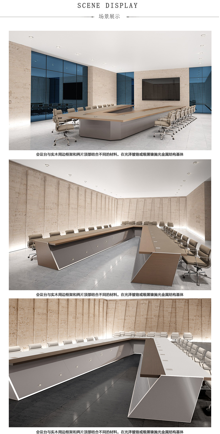 会议台|会议条桌|办公家具|设计师家具|木制斜边会议桌