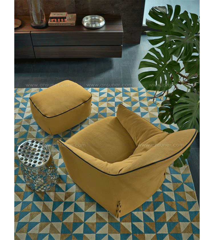 Poliform,Pouf Santa Monica Lounge:A very enveloping and comfortable pouf,which founds its singularity in the seasonal coverings.Its style is casual and chic;casual for its comfort and unformal character and chic for the wide range of coverings recalling Poliform's universe.Santa Monica is a "mix and match"of fabric,cushions and accessories.