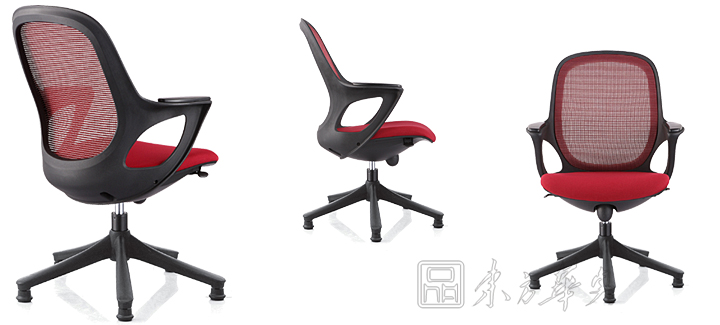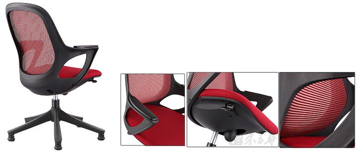 ※   黑色框架,红色网布椅的不同角度展示,三角度的展现。