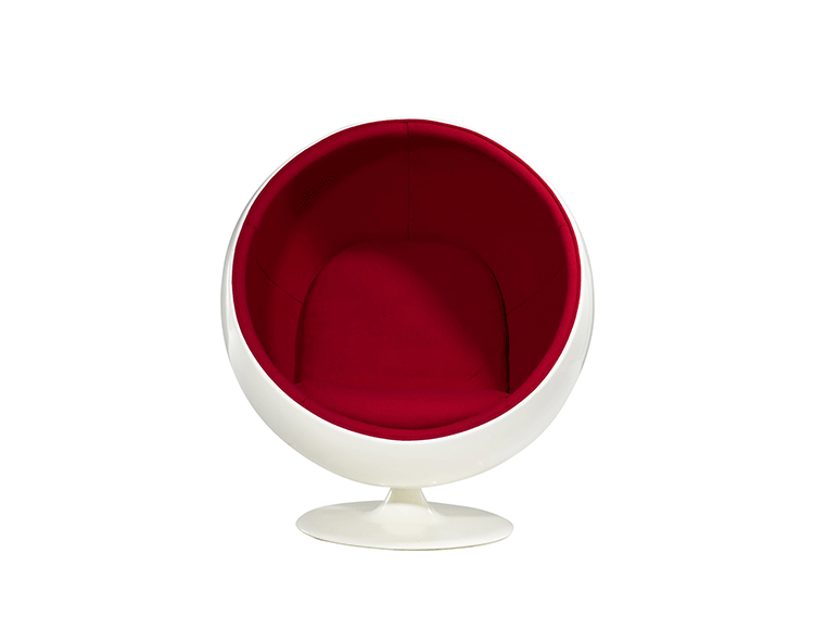 “球椅”是介乎于家具和建筑之间的一种产品,它好像“房间里的房间”,椅子很矮,坐进去,就仿佛陷入另外的一个世界,能迅速拥有安静舒适的环境,外界的噪音也被抵挡住。可以躲在里面冥想、放松身心,或者打私人电话。设计师阿尼奥就在自己那把原版的“球椅”内壁上装了一个红色的电话机,“球椅”提供一个相对私密的空间。椅子底部有轴,能360度旋转,坐在里面的人向外看,眼前的风景会随着转动而改变。这样,即使蜷缩在椅子里,也不会有与外界完全隔离的孤独感。就是这样一个狭小的空间,却带给了人们无比的安全感与舒适感,也就是这把椅子的诞生,掀开了“PODLIFE” 的篇章。"
