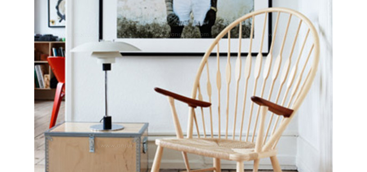 孔雀椅 Peacock 是 Finn Juhl(设计师)给的,他第一眼看到就叫出这个名字然后一直延续至今。 细骨条的椅背,以及形成孔雀样子的节,不仅仅给人带来视觉上的愉悦,同样也带来了良好的灵机性。
