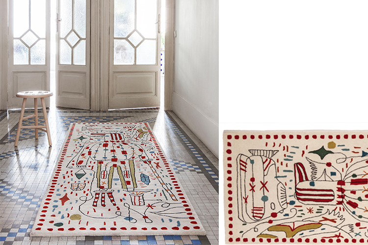 第一眼看到的是一片混乱的颜色和形状,它们侵入了地毯。然而,在仔细看,Jaime海因弹簧的想象力生活:海龟、嘴唇,手,凳子,鱼,男人等等...