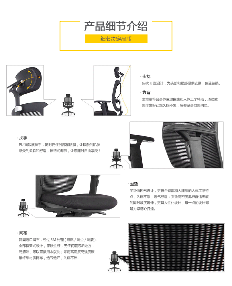 CG-E1055的优美设计有利于持久的舒适和美感。工学椅的结构和功能利用同步倾仰底盘控制功能锁定,滑座和高度调节。高度和角度均可调的扶手和头枕都包含在这张特有的工学椅里。