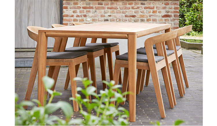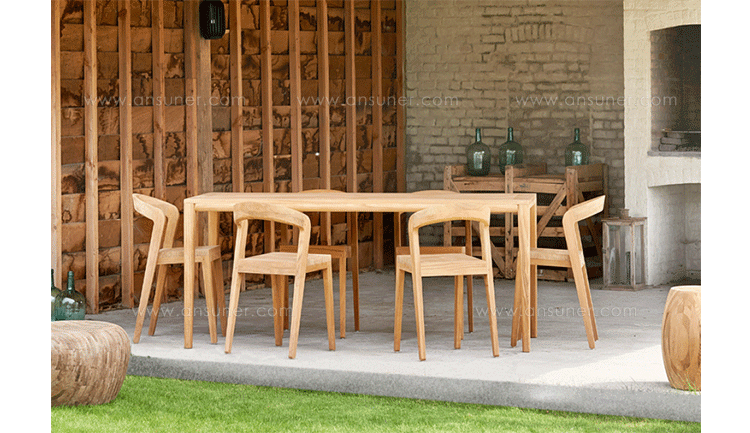 Elegant massive wooden table with an unique contemporary design,rounded edges at the table top and refined table legs.