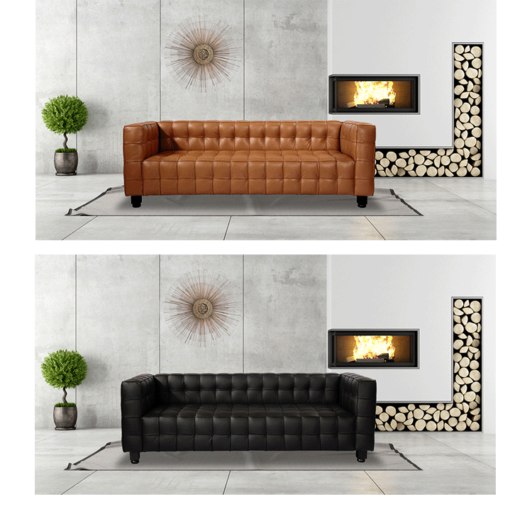 This high quality reproduction of the Josef Hoffmann Kubus Sofa features a handcrafted hardwood frame graciously lined with polyurethane foam.The surface is luxuriously soft to the touch, compliments of its premium 100%Top-Grain Aniline leather upholstery. This premium reproduction is generously proportioned to original full-scale size and cube count.Precision stitched & aniline leather piped tactile cubes create a thick body of cushioning that is so comfortable you’ll understand why this sofa has been a modern classic for nearly a century.For those looking for historic significance in midcentury modern furnishings,the Hoffman Kubus is a certain candidate.